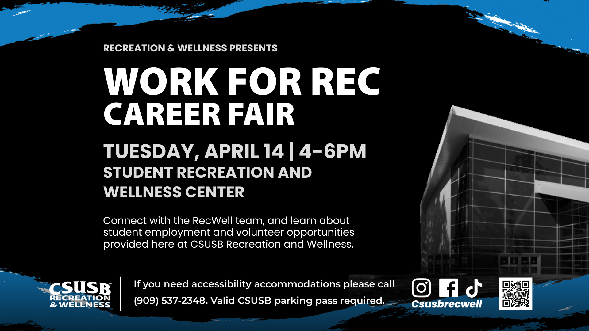 Work for Rec is your opportunity to explore exciting job opportunities with CSUSB Recreation & Wellness! Join us to learn about the wide range of positions available within Rec Well.