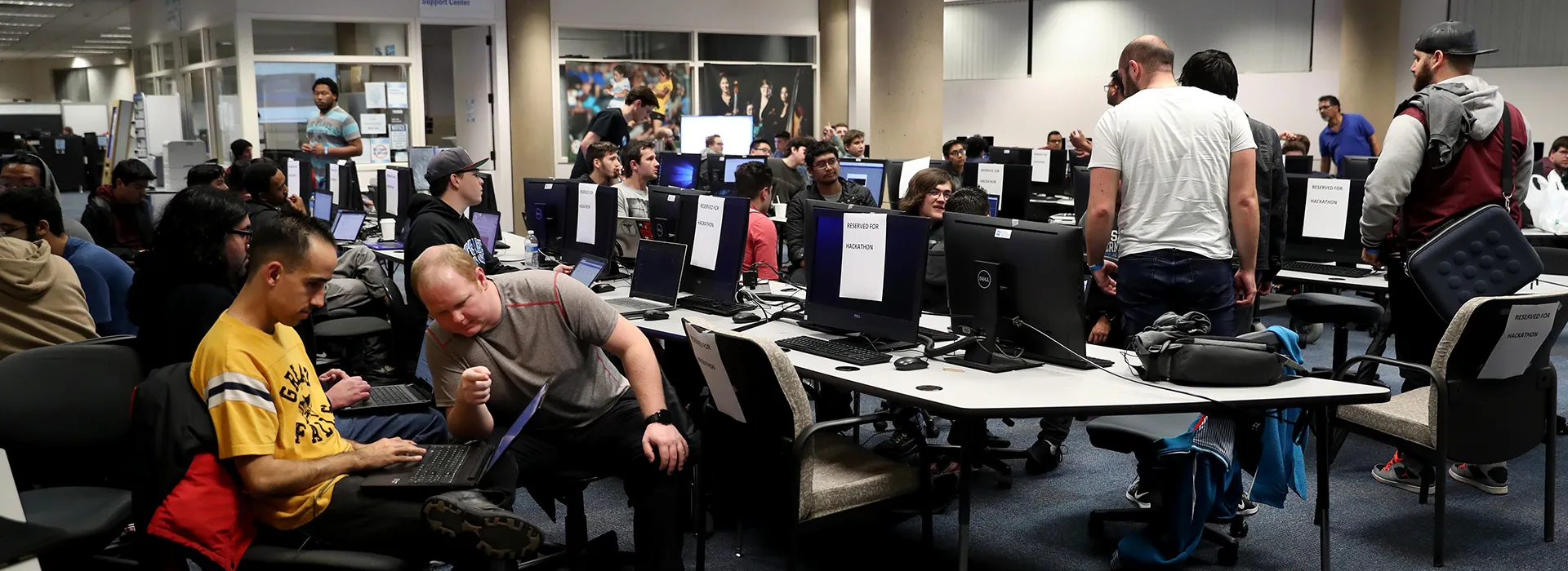 Updated with hackathon winners.Written by Olabode Lawal/CSUSB Office of Strategic CommunicationPhotos by Corinne McCurdy/CSUSBThe Computer Science and Engineering Club at Cal State San Bernardino held its first Google Cloud Platform (GCP) Hackathon on Saturday, March 6, and concluded Sunday, March 3, at noon. The event was a competition between teams consisting of 3-5 people who were given 15 hours to hack enough code to demonstrate Sunday morning. Each team was judged by a panel of experts. Fifty-nine students registered and participated in the GCP hackathon in 11 groups. The team “Peace of Mind,” with team members Samuel Jacuinde, Montana Williams, Nicholas Thai, Colby Holloman and Daniel Martinez, took first place. Each team member was awarded a Google Home Mini. “The most fascinating part is that the participants I met claimed they were well rested as of Monday morning and had the best sleep of this quarter,” said Arusyak Hovhannesyan, the president of the CSE club. “The participants had a very positive experience and are becoming more motivated on learning of computer science and technology.” 'It was a very nice place to have it. I got to teach myself Python and html. I'm looking forward to doing it again, next year,” said Tyler Oviatt, one of the participants at the event. “It was really cool to have Google Cloud Platform; it got me to see what it’s like in the job field and prepare me to be a programmer.' Participant Andrew Beechko said, 'I was surprised and thrilled by the turn out of this event and by the fact that the whole thing went smoothly. I enjoyed the competitive and fast paced environment, which made this creative environment actually enjoyable instead of stressful.' Esdras Lopez, who also participated in the event, called it an “exhilarating experience.” “I am glad I went and experienced how one of these competitions work. As CSE 201 students, we still have a long way to go in terms of real-world applications of computer science. This experience made me realize I should teach myself another programming language besides C++,” Lopez said. The event also featured three judges from the School of Computer Science and Engineering (CSE), Information Technology Services (ITS), and Institute of Electrical and Electronics Engineers (IEEE) Foothill Ssection. The hackathon was sponsored by the Institute of Electrical and Electronics Engineers (IEEE) foothill section, Google, CSUSB Associated Students Inc. (ASI), the university’s Computer Science and Engineering Club (CSE), as well as Information Technology Services (ITS). For more information, contact Arusyak Hovhannesyan at president.cse.csusb@gmail.com or Sagar Patel CSE Club Vice President at vicepresident.cse.csusb@gmail.com.