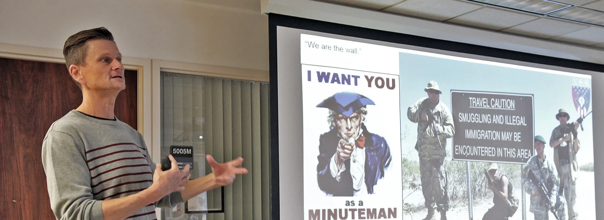 Kohout talked about the history, politics and environmental implications of the border wall, as well as sharing images and stories from a recent trip to Texas and Tijuana, where he took pictures of the barrier.
