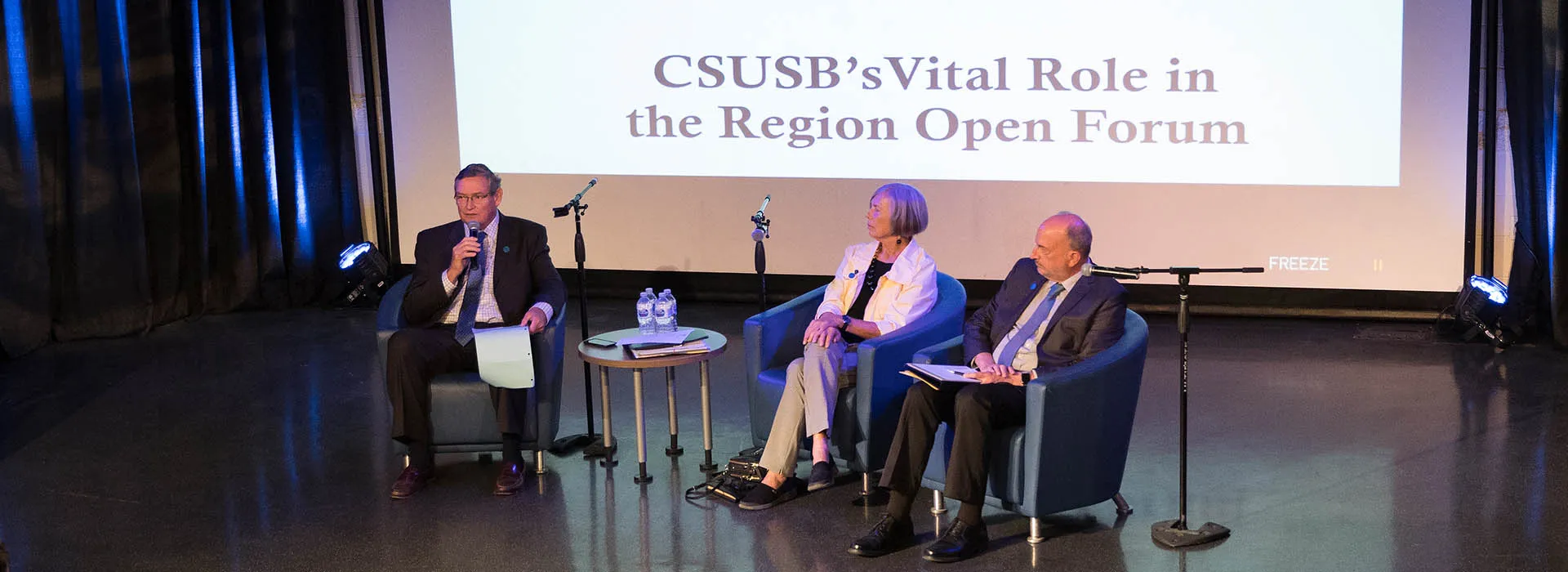 He said: “You know better than I of the enormous importance and need of public education, affordable education, here in the Inland Empire. And you have been leaders in creating — by cooperating with the public schools and the community colleges in partnerships — a robust set of understanding of what it means to keep young boys and girls in elementary, middle school, high school, in school taking the right courses, doing the right things, so that they are eligible to come directly to Cal State San Bernardino and/or go through the community college system and transfer in.”