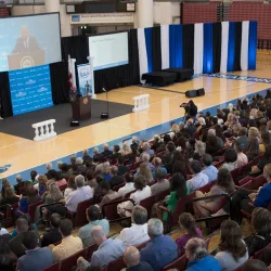 Convocation, the official launch of the new academic year, is “an occasion where foundation and future converge,” said Tomás D. Morales, CSUSB president, said during his annual address at Coussoulis Arena Sept. 18.