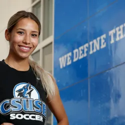 Alumna Rachael Figg, who played forward for the CSUSB women’s soccer team, is the first Coyote to play professional soccer in Spain.