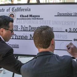 State assemblymen Chad Mayes and Eduardo Garcia, who stewarded the request for direct funding to the campus last spring, formally presented the state’s $3 million commitment to the campus during a ceremony on Tuesday, Dec. 19.