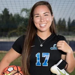 Arielle Stoyanow loves playing centerback on the CSUSB women’s soccer team, not only because of its physicality, but also because it has taught her about leadership and the friendships she has developed with her teammates.