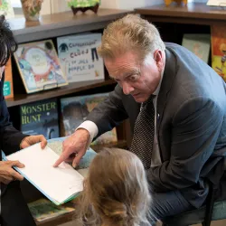 CSUSB President Tomás D. Morales and San Bernardino County Superintendent of Schools Ted Alejandre shared with students the importance of learning to read.