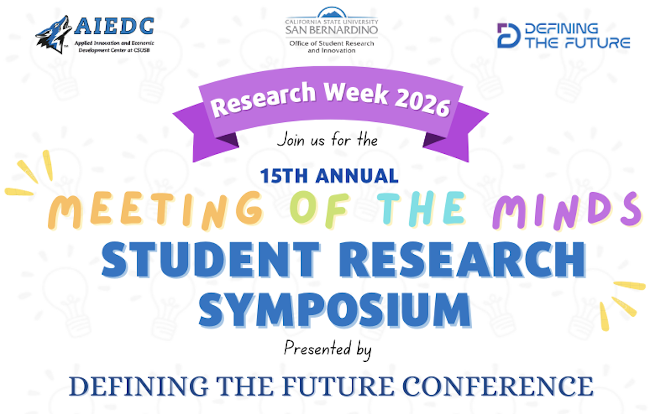 Celebrating the achievements of our students, “Meeting of the Minds” is a one-day event recognizing the outstanding scholarly and creative accomplishments of CSUSB graduate and undergraduate students. Join in on an opportunity to view their research and creative activities to the entire CSUSB campus and the broader community.